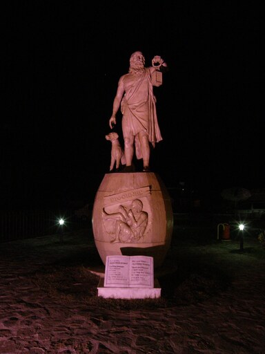 Artık Sinop’tayız. Bizi hemen Diyojen heykeli karşılıyor. Heykel pembe ışık ile aydınlatılmış.