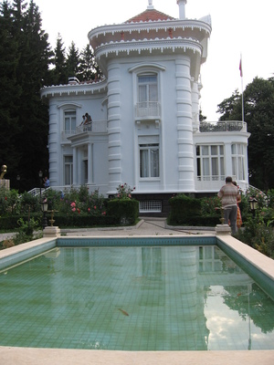 Dört katlı, bembeyaz, kuğu gibi köşkten çıkıp otobüsümüze bindik.