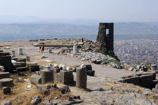 Tiyatronun basamaklarına oturup Bergama şehrine bakmak lazım. İyi bir zumu olan bir kamera yada fotoğraf makinası ile kasabanın detayları daha net görülüyor. Beylikler yada Osmanlı döneminden kalma yapılar, kasabanın nispeten dışında kalan su kemerine benzer kalıntılar, kasabadaki tümülüsler hepsi ne varsa gözlerinizin önünde.